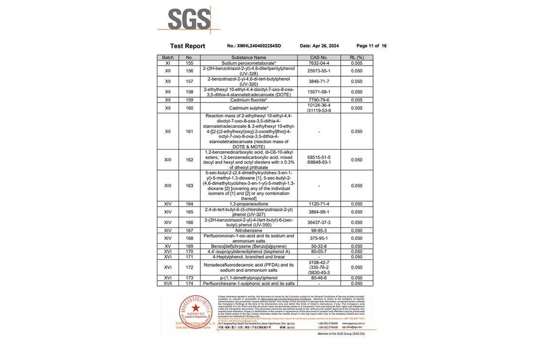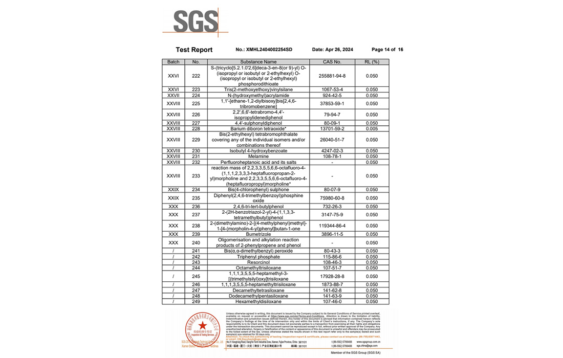 改苯的RoHS和FDA報告
