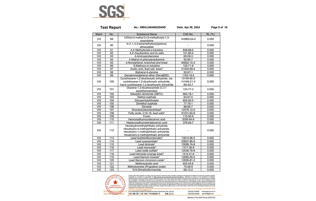 明苯的RoHS和FDA報告